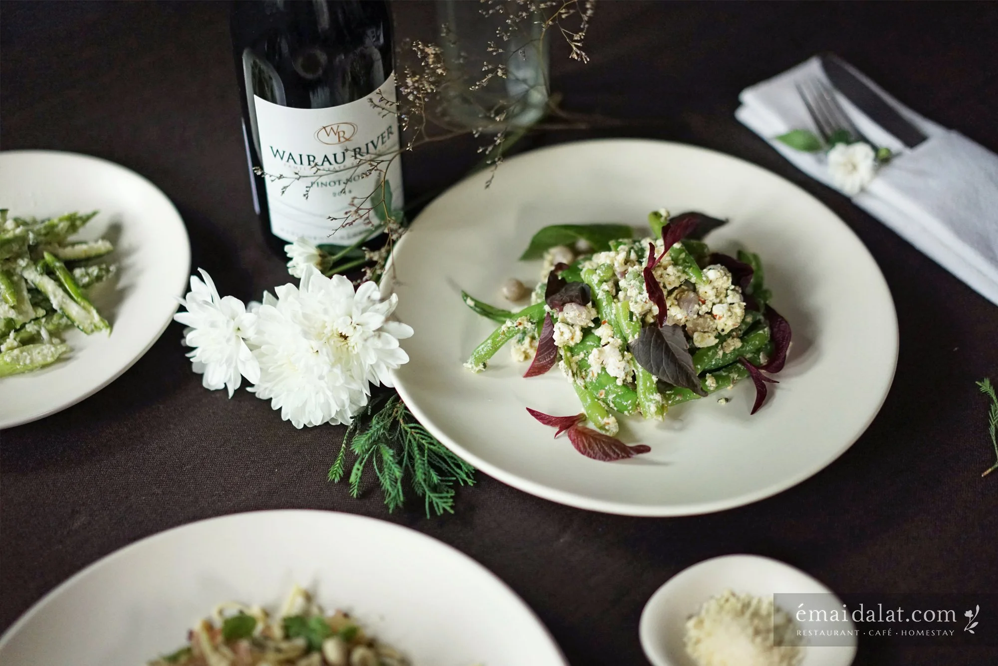 with Romaine Lettuce, Pistachio, Dijon dressing & Pecorino Cheese